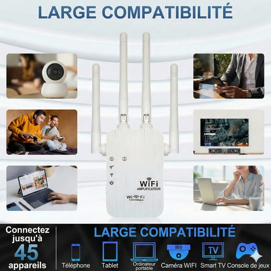 Répéteur WiFi 1200 Mbps - Amplificateur WiFi Double Bande (5 GHz & 2,4 GHz) - Avec Port Ethernet & Fonction WPS