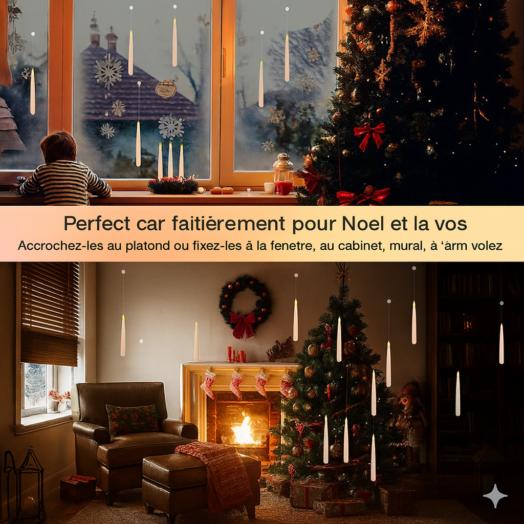 12 Bougies LED Flottantes avec Télécommande Baguette Magique – Bougies Suspendues Sans Flamme pour Décoration de Noël & Halloween