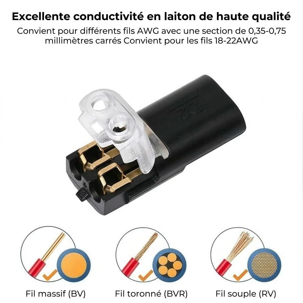 [20 Pièces] Connecteurs de fils rapides avec verrouillage – Connexion de fiche à 2 pôles