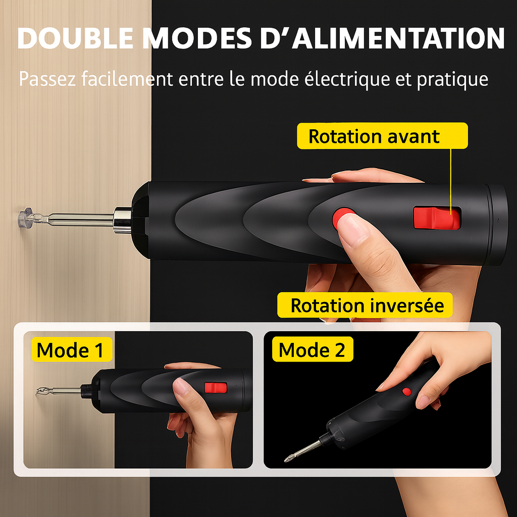 Découvrez l’équilibre idéal entre puissance et maîtrise grâce à la double fonction électrique et manuelle. Utilisez le mode électrique pour un vissage ultra-rapide en quelques secondes, puis passez instantanément au mode manuel pour un contrôle précis lors des travaux délicats. Son commande intuitive avec bouton de marche arrière unique permet de changer facilement de direction sans abîmer les vis.