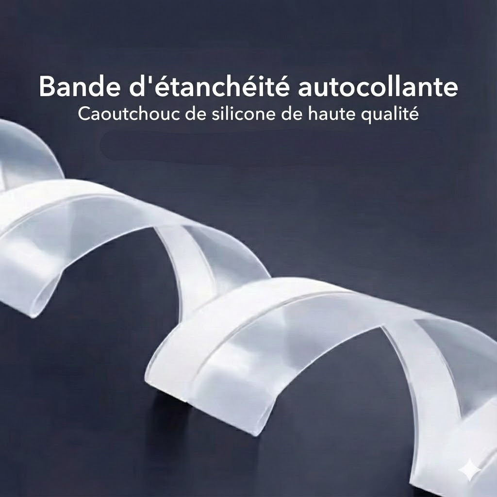 Fabriquée en silicone flexible et imperméable, cette bande est écologique et totalement dépourvue d’odeurs irritantes — parfaite pour préserver la santé de votre foyer. Sa surface adhésive ultra-forte reste stable sans glisser et résiste même aux conditions climatiques extrêmes. Elle se retire facilement, sans laisser de traces ni endommager la surface.