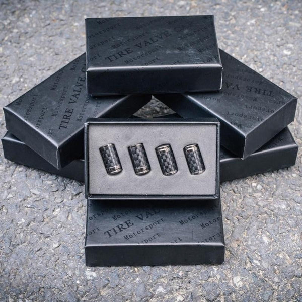 Kit de Bouchons de Valve Carbone de Luxe – Look Fibre de Carbone – Universel pour voiture, moto et vélo – Protection de roue sportive – [Lot de 4]