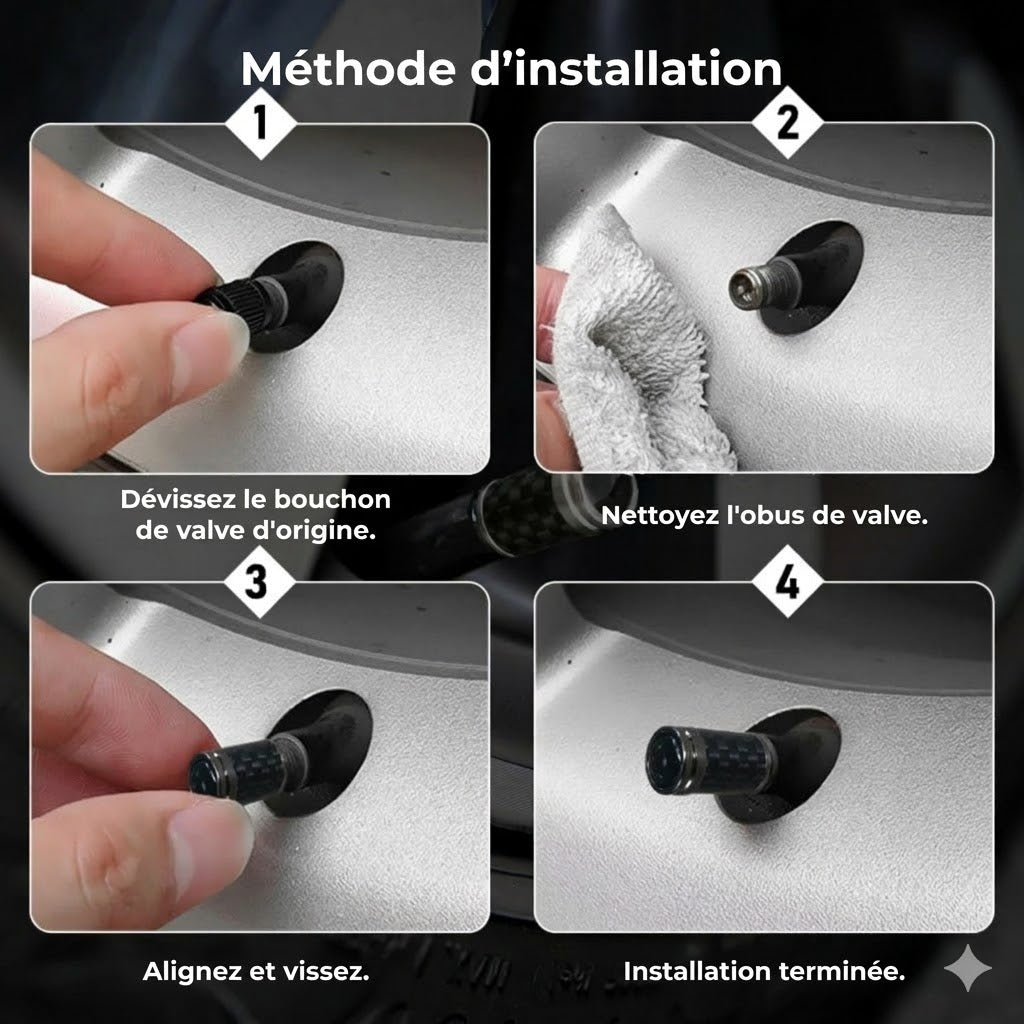 Spécifications - Bouchons de Valve en Fibre de Carbone (4x)