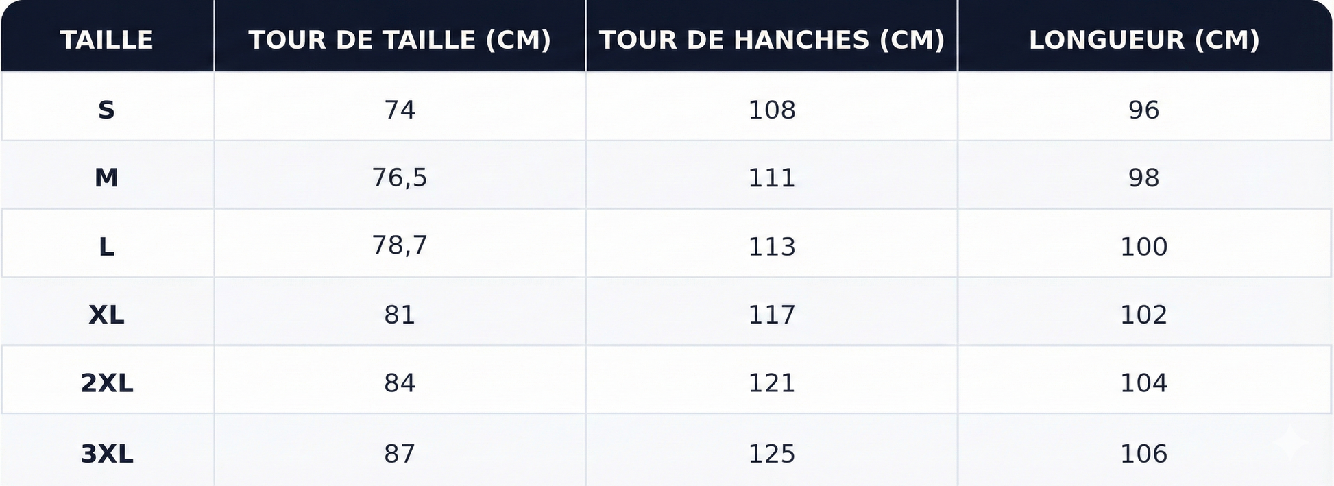 IMPORTANT : si vous êtes entre deux tailles, nous vous recommandons de choisir la taille supérieure pour un confort optimal.