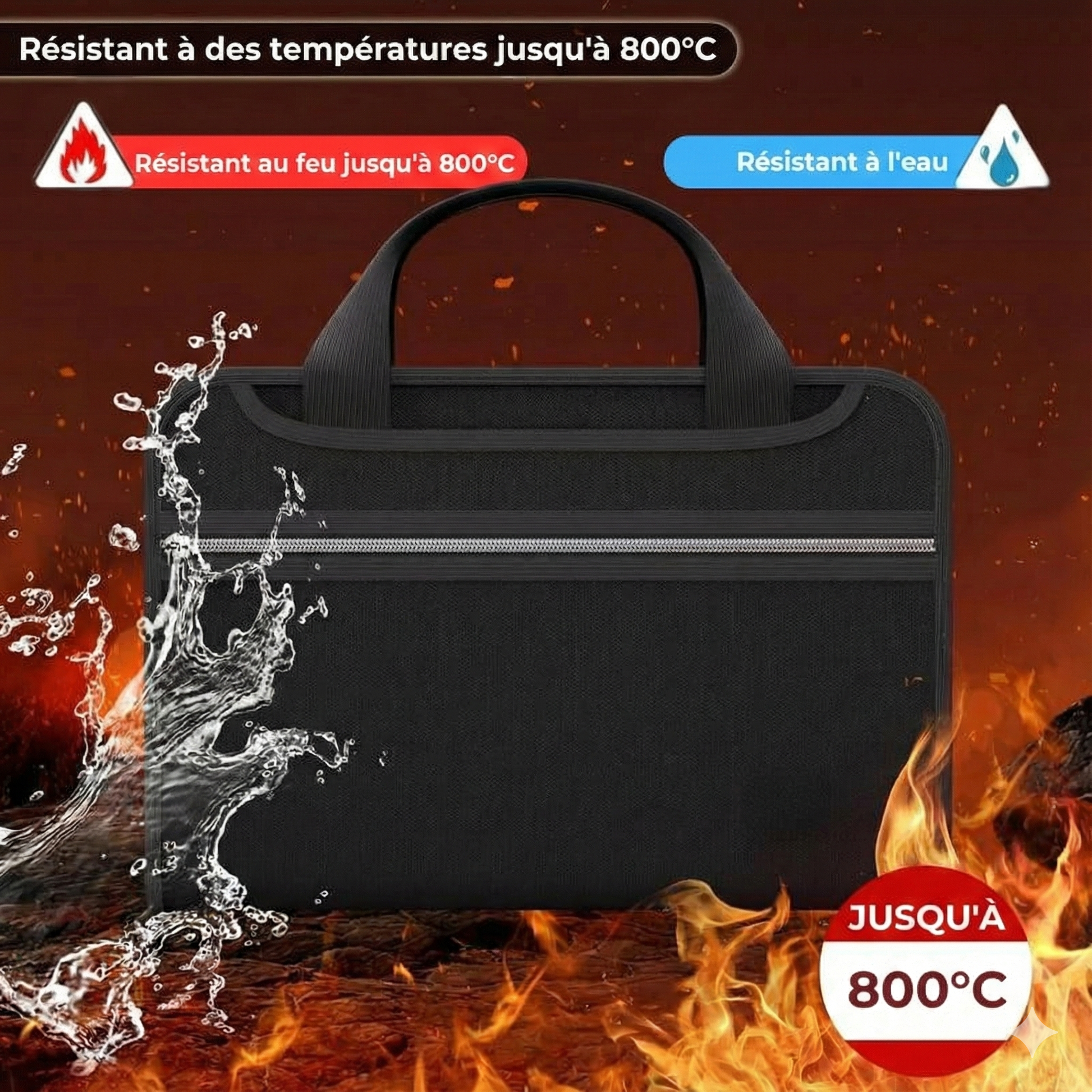 Cette pochette est conçue pour offrir une protection triple, réunissant résistance au feu, étanchéité et protection contre la poussière. Fabriquée en tissu de fibre de verre siliconé renforcé, elle supporte des températures allant jusqu’à 2200 °F (certification UL94). Vos documents essentiels restent ainsi protégés contre les incendies, les liquides renversés et l’usure quotidienne.