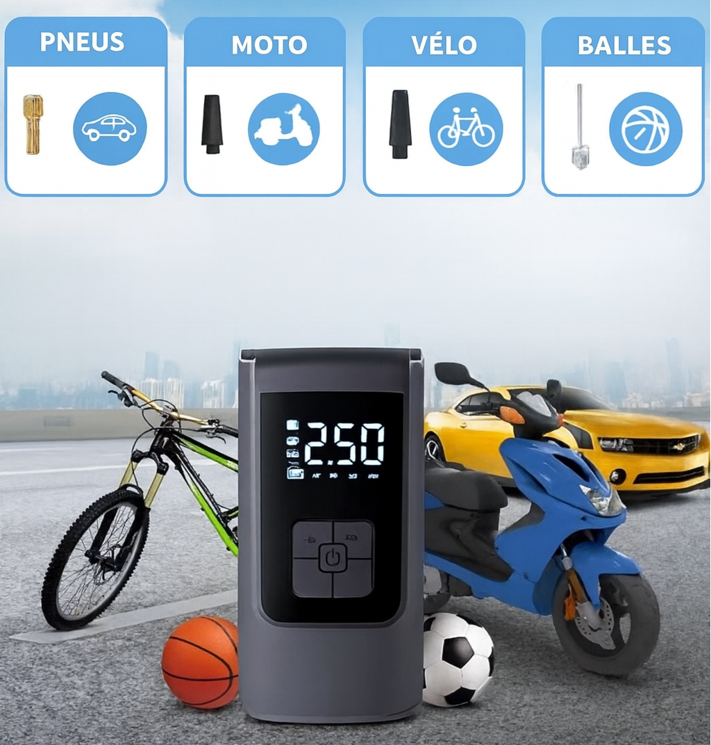 Contrairement aux pompes traditionnelles, elle offre une liberté totale sans fil et une polyvalence incomparable. Des pneus de vélo au matériel de sport, elle gère tout sans effort grâce à sa puissante batterie intégrée.