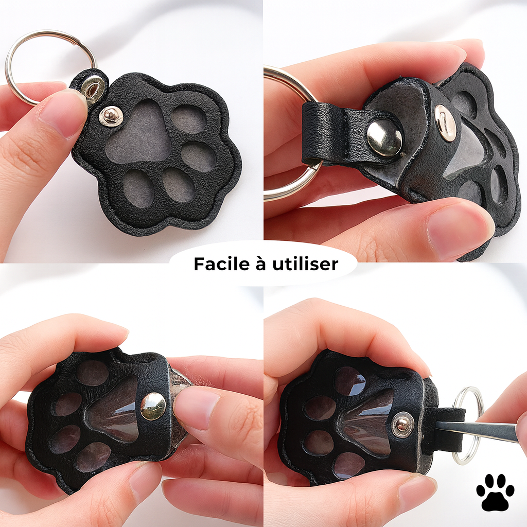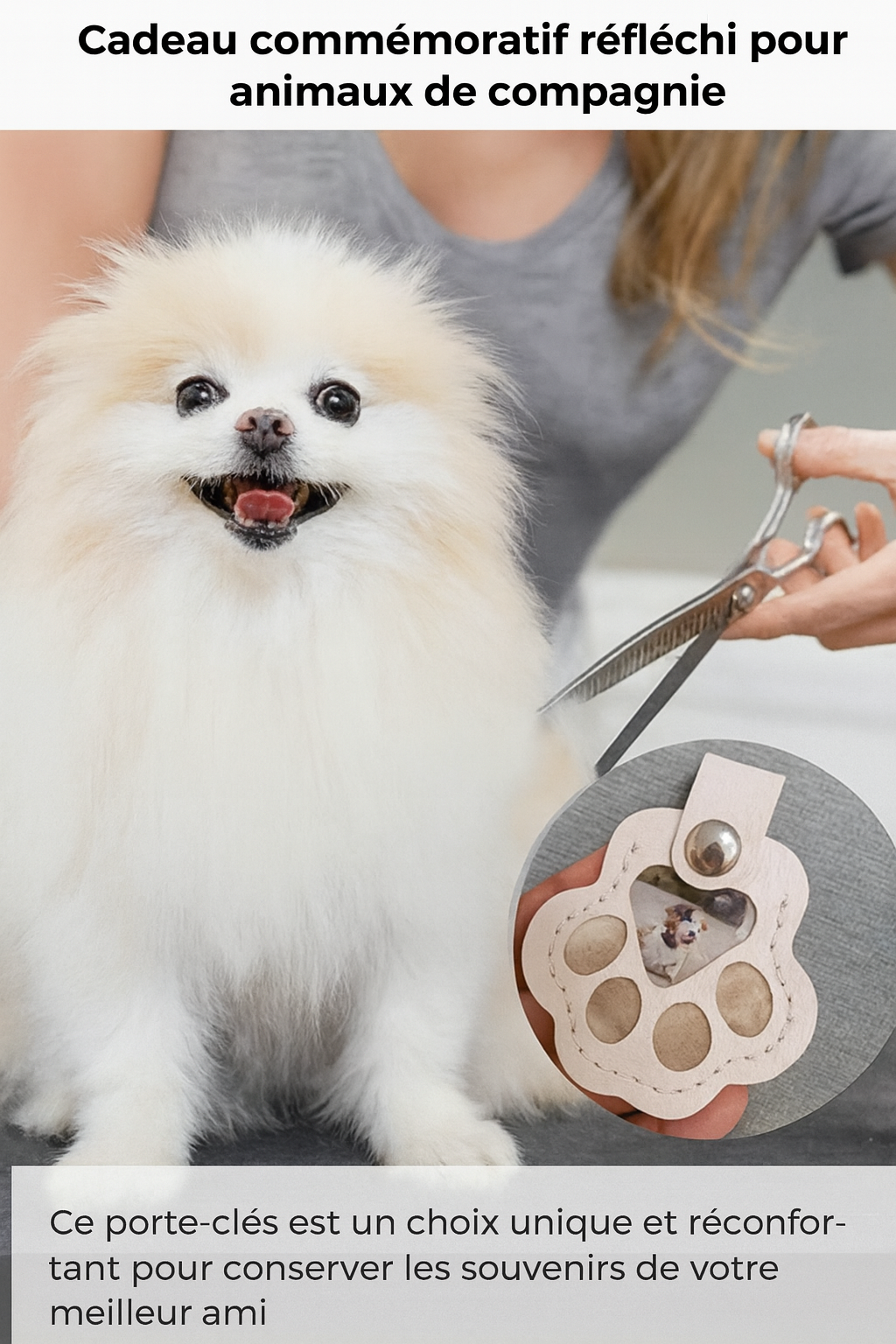 Sa forme douce en empreinte de patte évoque subtilement la présence de votre chien ou de votre chat. Conçu en similicuir durable avec une finition soignée, ce porte-clés allie valeur sentimentale et élégance discrète. Il s’intègre naturellement à vos accessoires quotidiens, tout en restant un symbole chargé d’émotion.