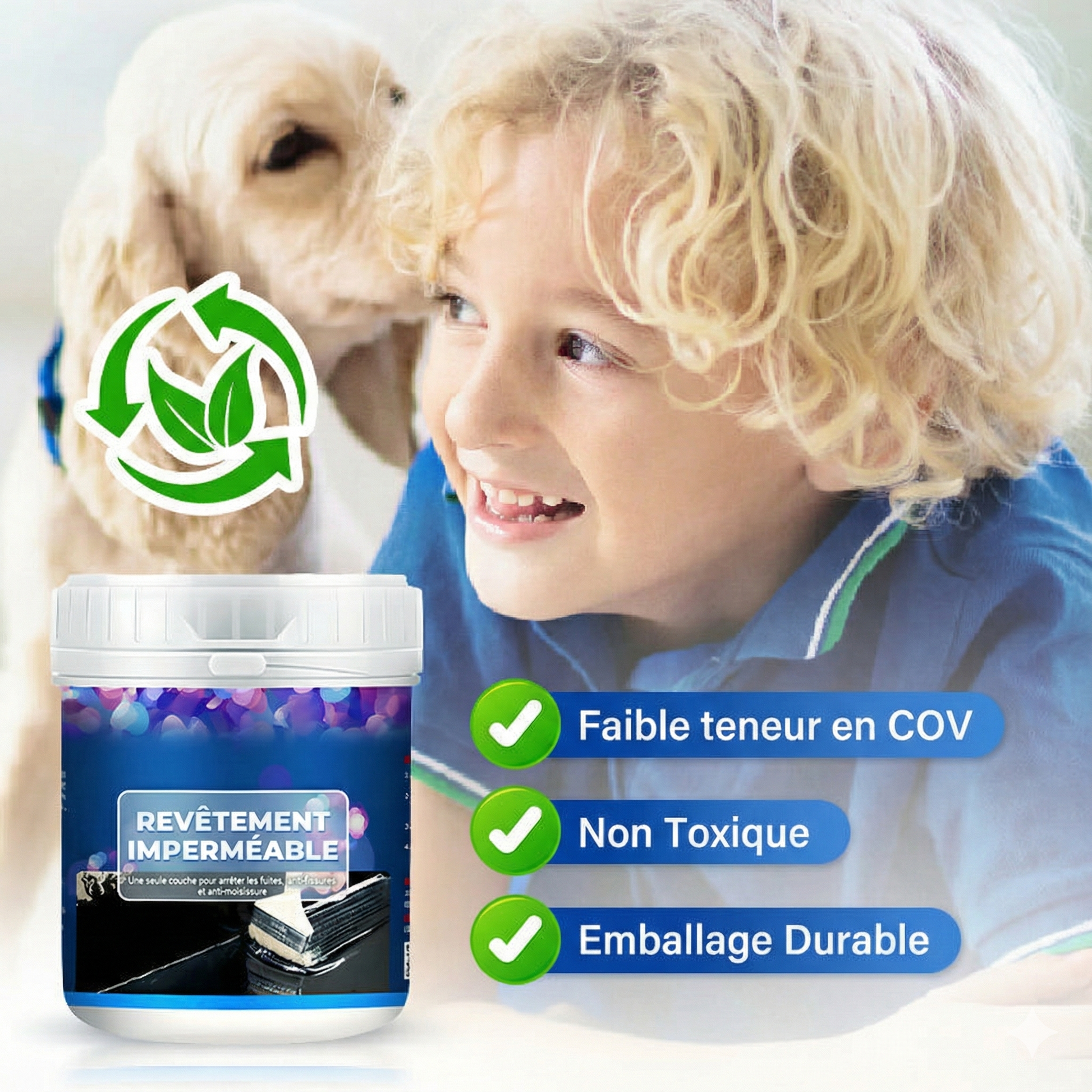 La texture lisse de cette coating facilite une application homogène au pinceau, rouleau ou pulvérisateur. Son séchage rapide réduit les temps d’arrêt et permet de finaliser les projets plus vite. Sa composition écologique, à faible teneur en COV, représente un choix plus sûr pour votre famille. Polyvalente et efficace, elle convient parfaitement au bois, au béton, au métal et aux murs de sous-sol.