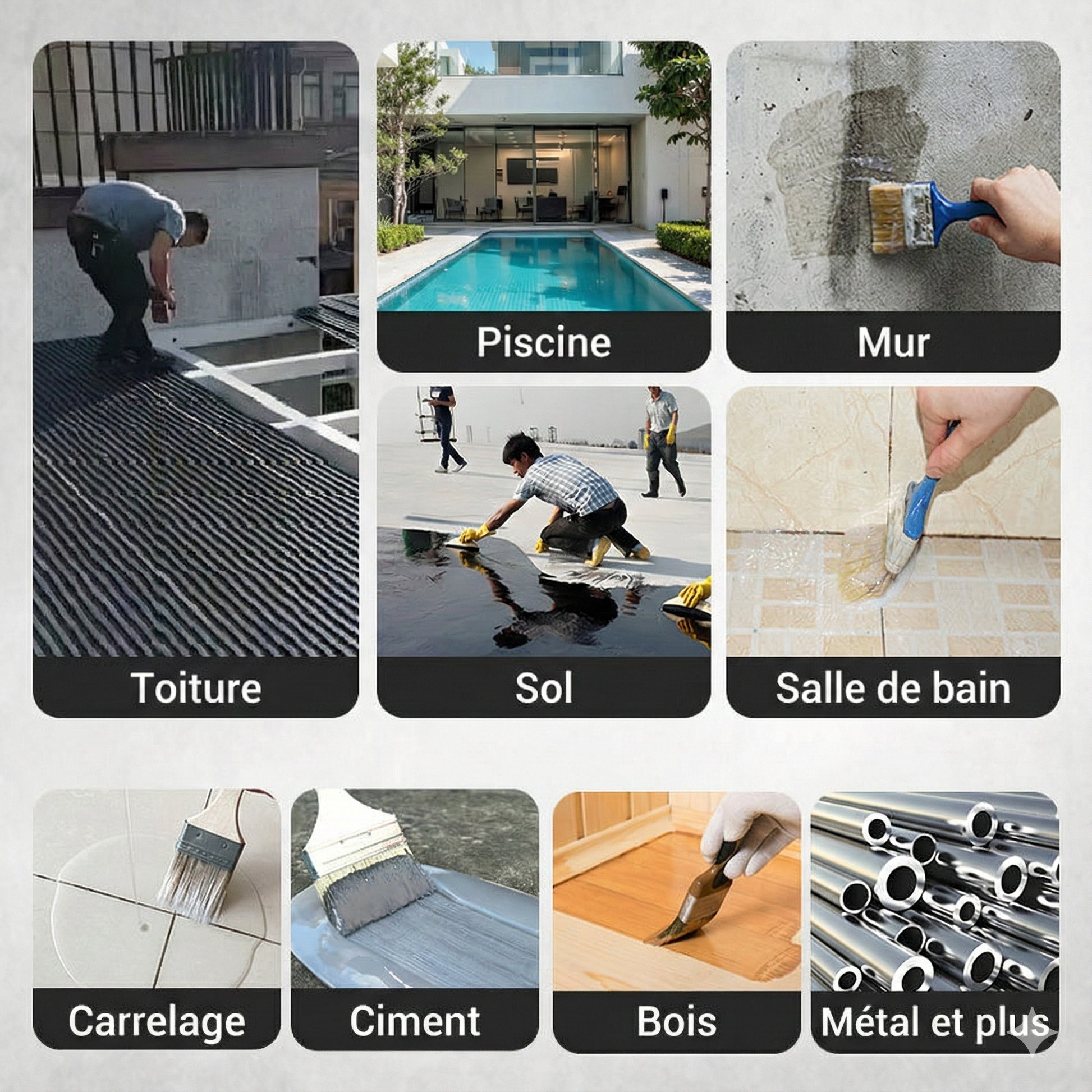 Applications idéales : réparation de fuites, fissures sur toits, gouttières, salles de bains, carreaux, rebords de fenêtres