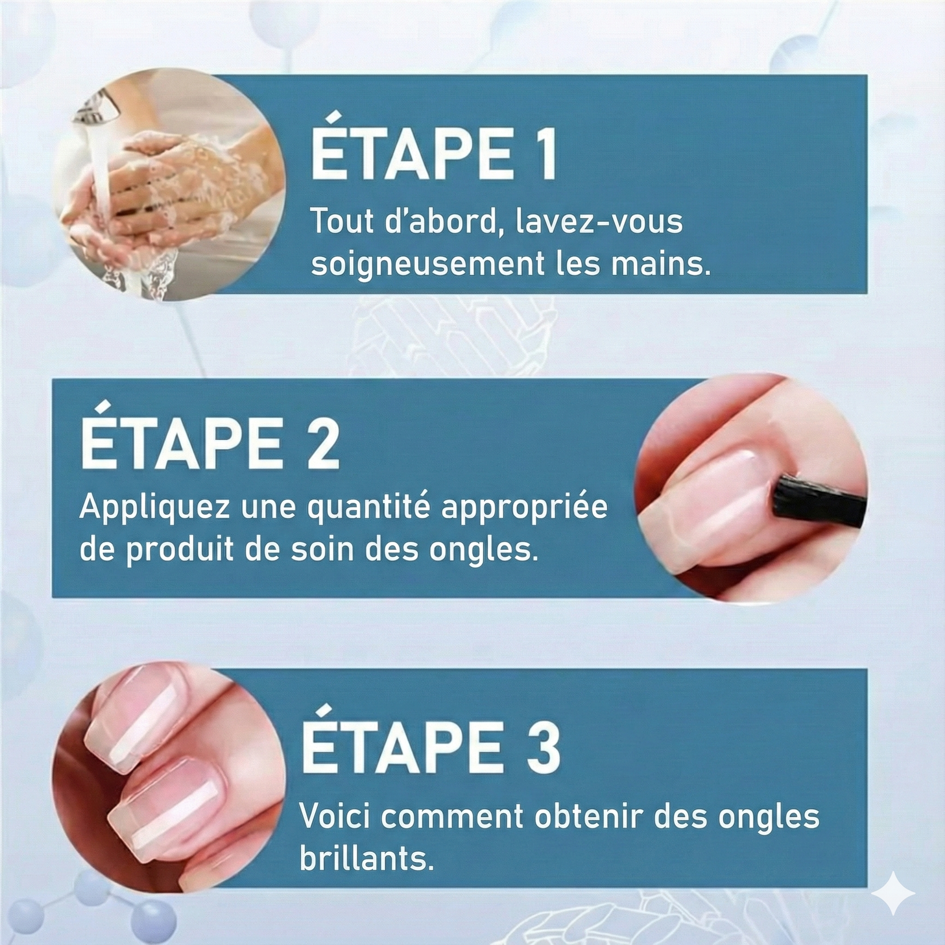 Offrez à vos ongles une apparence saine, naturelle et soignée grâce à une couche transparente qui apporte immédiatement une brillance éclatante digne d’un salon professionnel. Sa formule hydratante pénètre en profondeur dans les ongles secs et fragiles, aidant à retenir l’humidité essentielle pour prévenir les fissures et l’exfoliation. Elle restaure la souplesse naturelle de l’ongle tout en améliorant son aspect général.