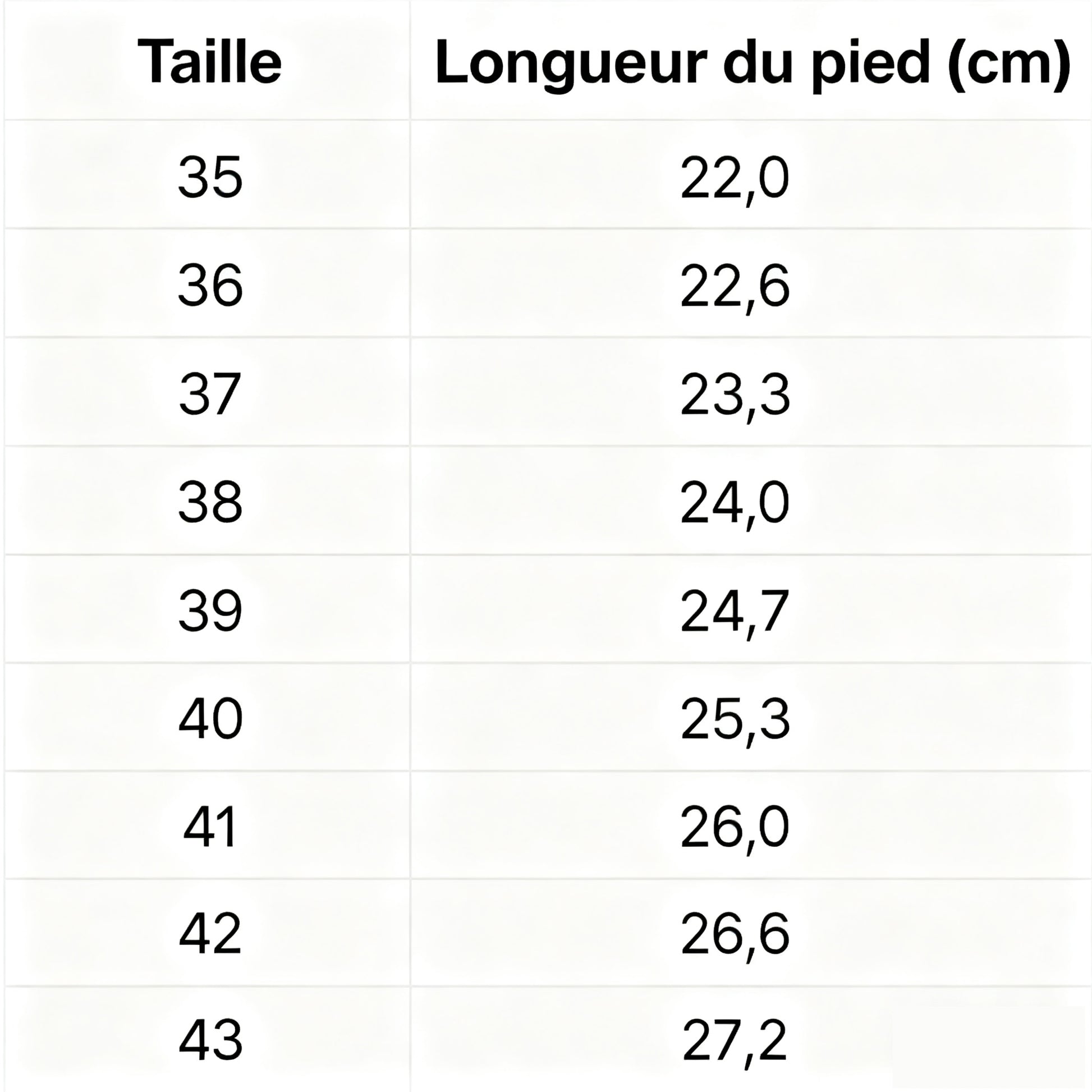 Tailles : du 35 au 45